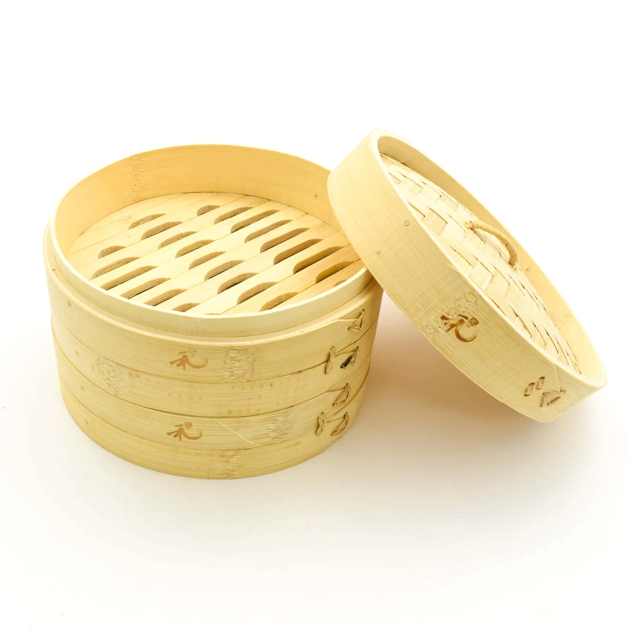 To use the bamboo steamer, simply place your food inside one or both or the tears with the lid on, and then stand in an inch of water in a saucepan or wok. Gently simmer the water at a low heat until your dish is perfectly steamed inside.