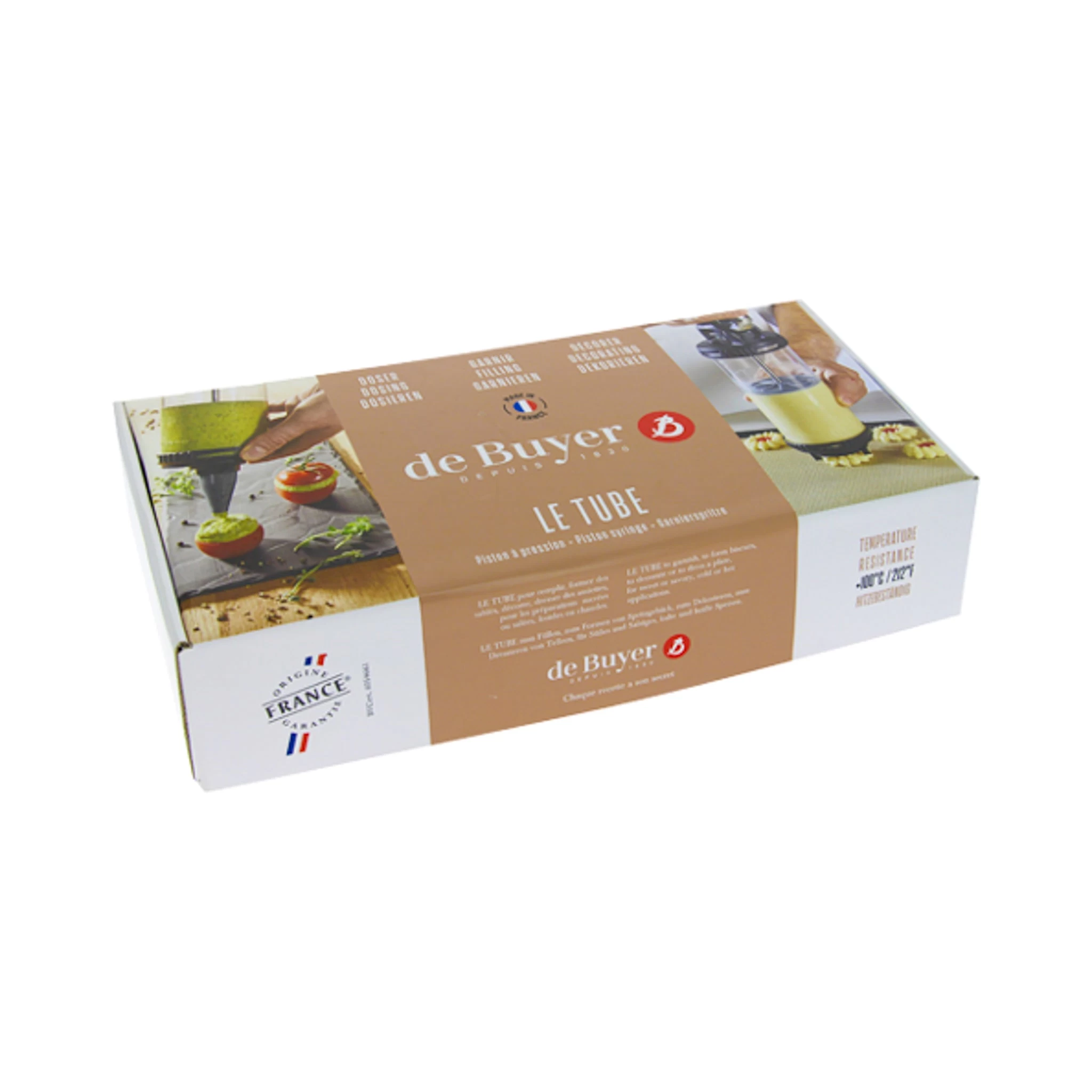 The De Buyer ‘Le Tube’ pastry syringe is the easiest way to get equal-sized cupcakes, profiteroles or macarons. You can even use it with whipped cream, mousse and buttercream.