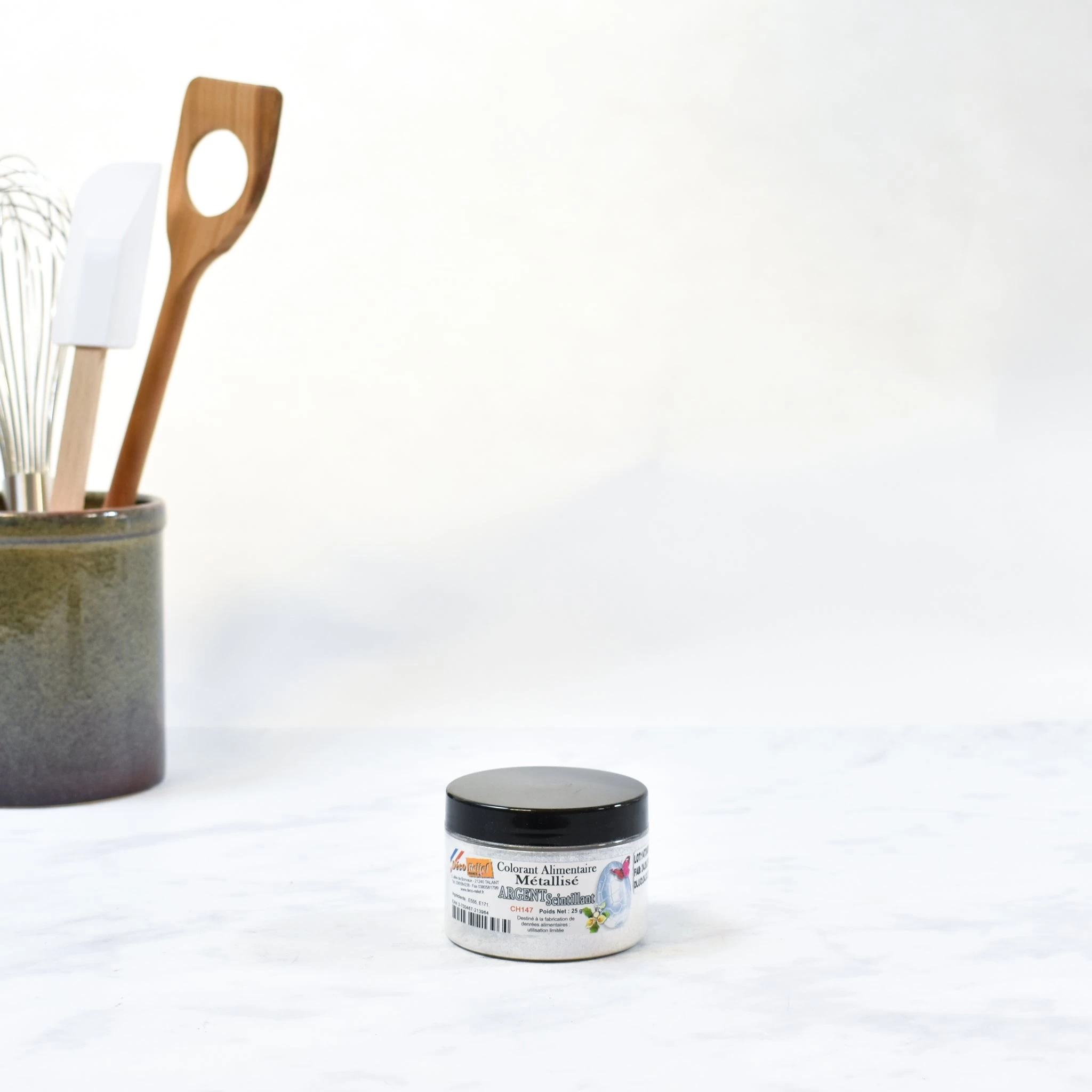 Edible sparkling powder food colour brings a lustrous shimmer to chocolate, cakes, and sugar work. Sprinkle the edible silver shimmer dust directly onto your creations, apply with a finger or brush, or mix with a little alcohol before applying it with a paint-brush. For shimmering chocolate-work, brush onto the insides of moulds before pouring in the chocolate, or paint a little onto a jelly mould for a pearlised dessert. With each application you need only use a tiny amount, so this professional sized pot of edible silver shimmer dust will last and last.