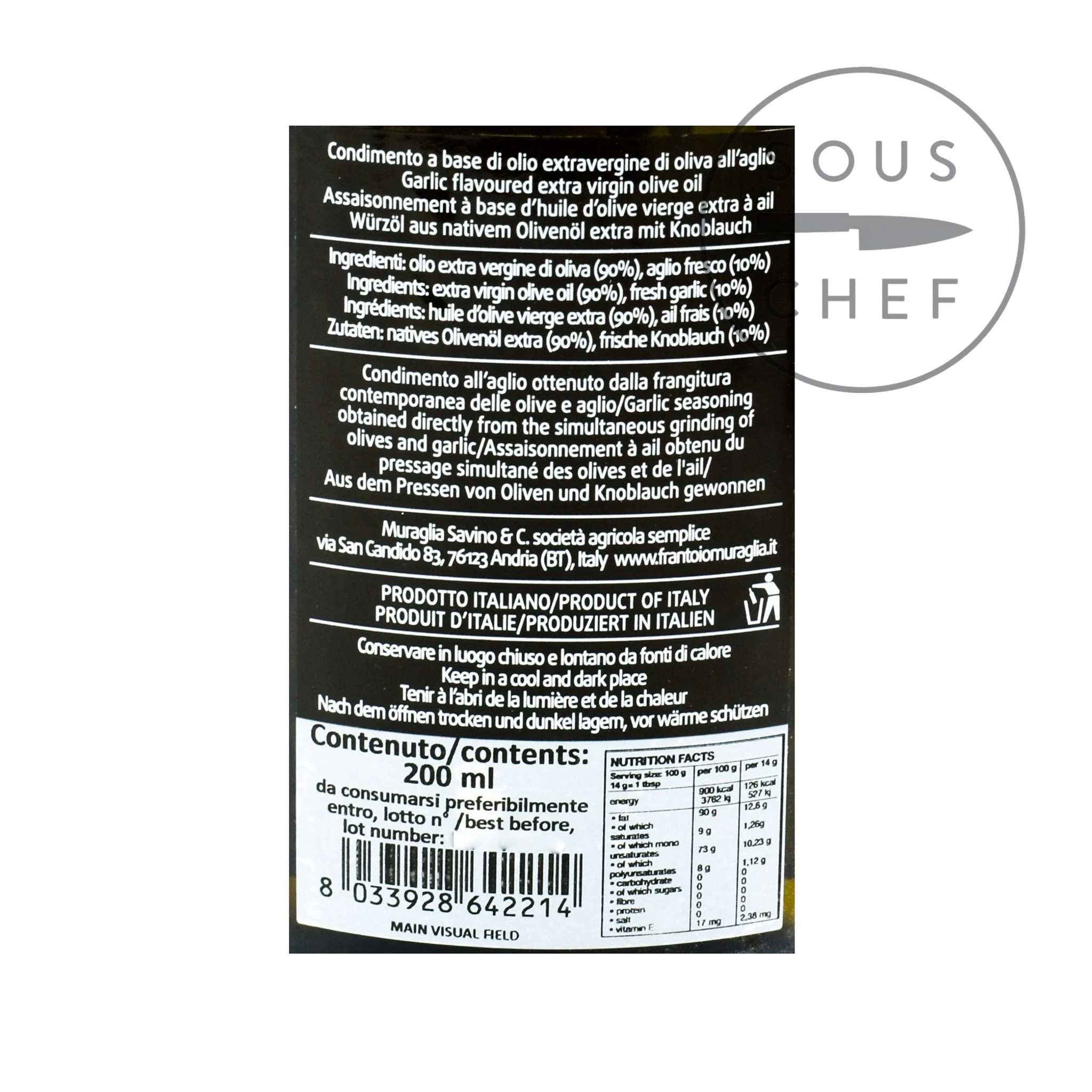 Ingredients: Extra virgin olive oil (90%), fresh garlic (10%)