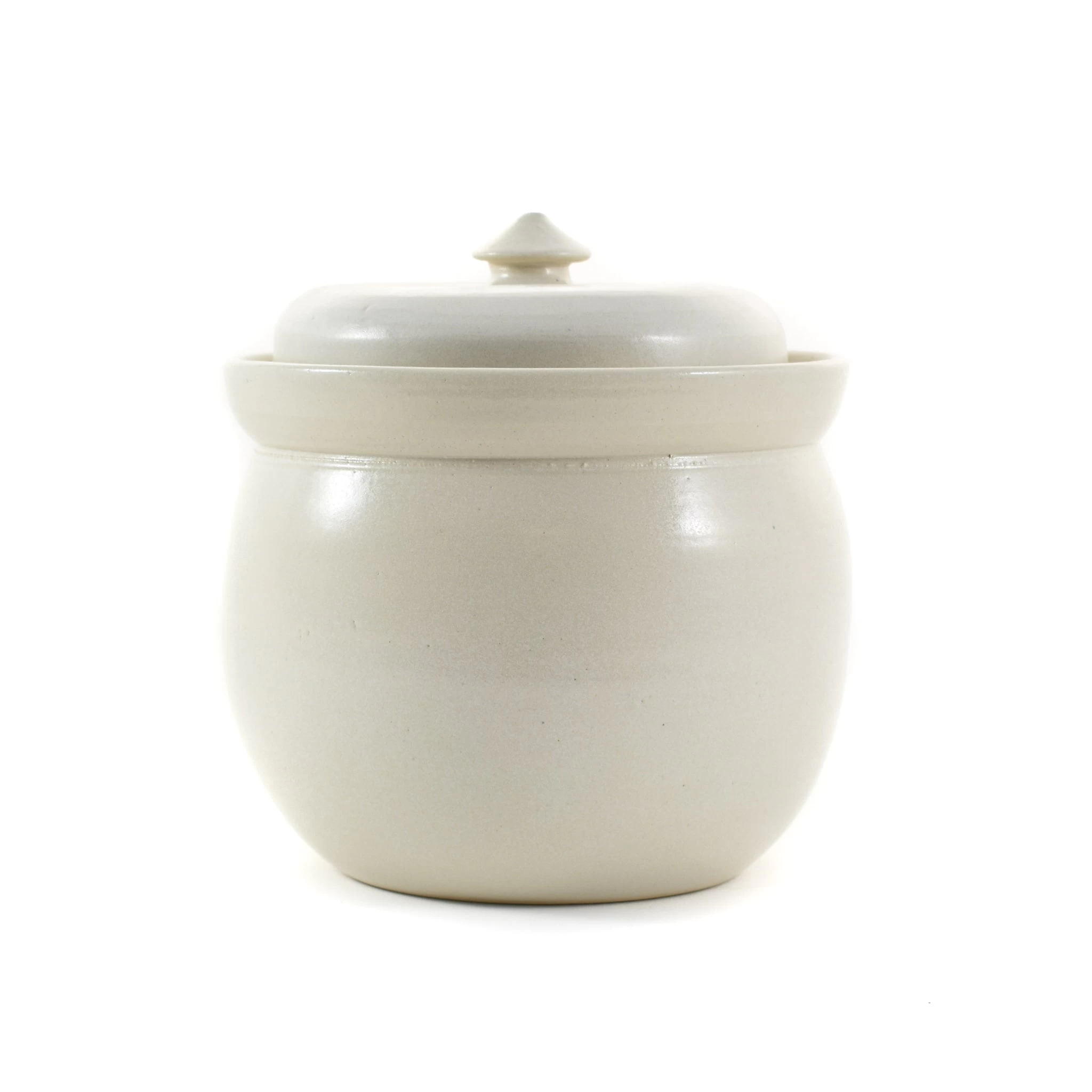 With this handmade stoneware fermenting crock you can make your own sauerkraut, kimchi and pickles at home. With a white glaze, it’s a beautiful piece of kitchen equipment that’s practical, too.