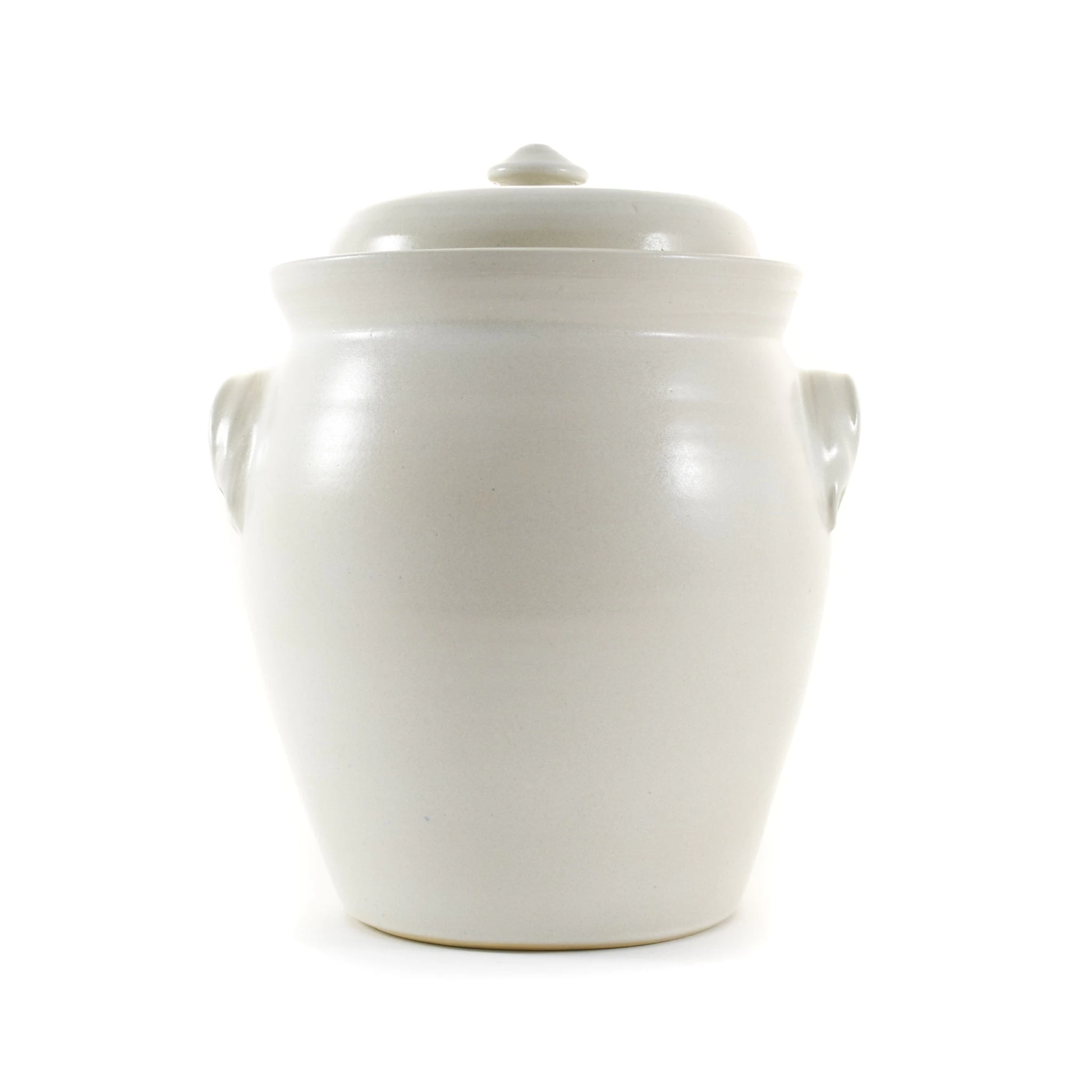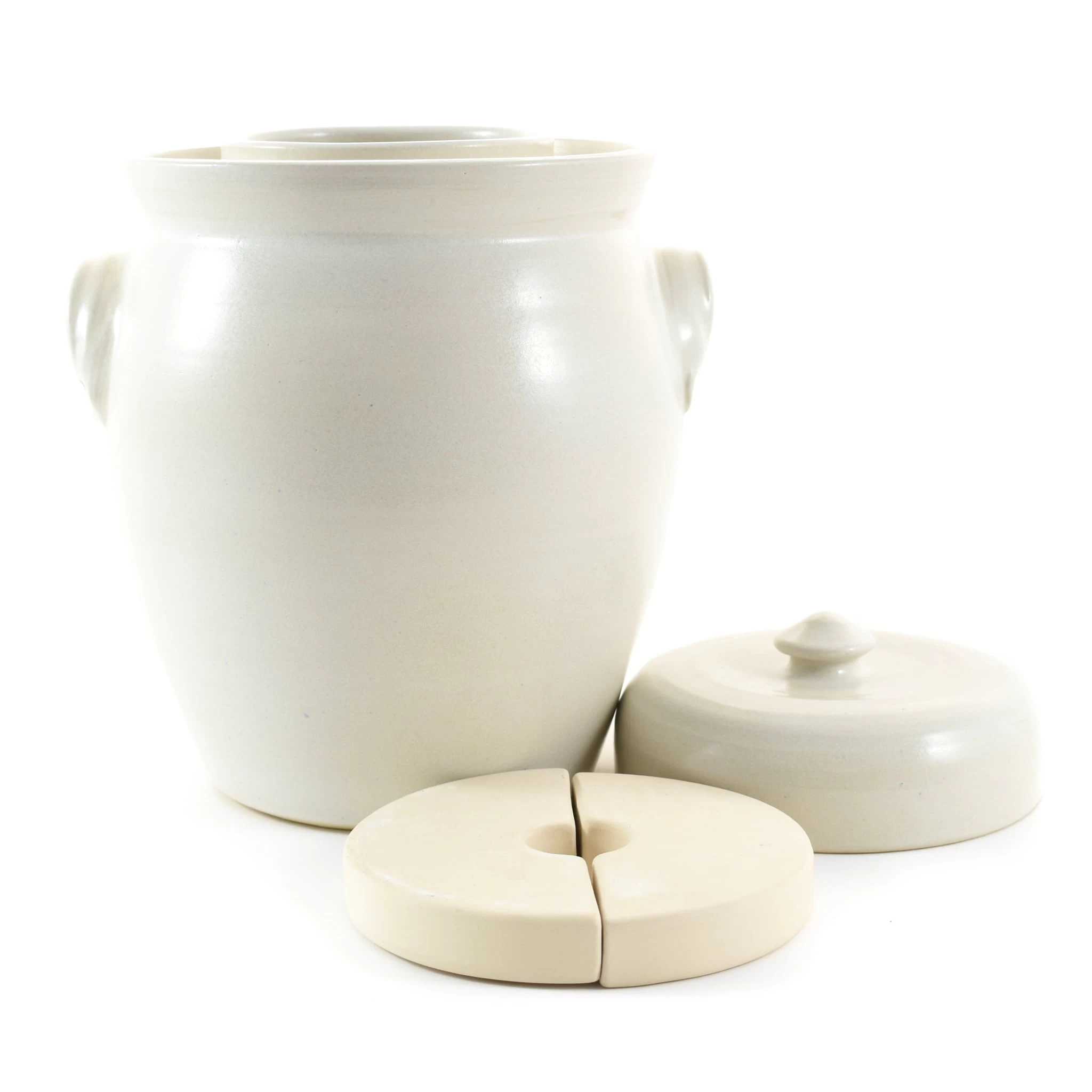This handmade stoneware fermenting crock in white is a beautiful piece of kitchen equipment for those that love making crunchy sauerkraut and zingy pickles at home.