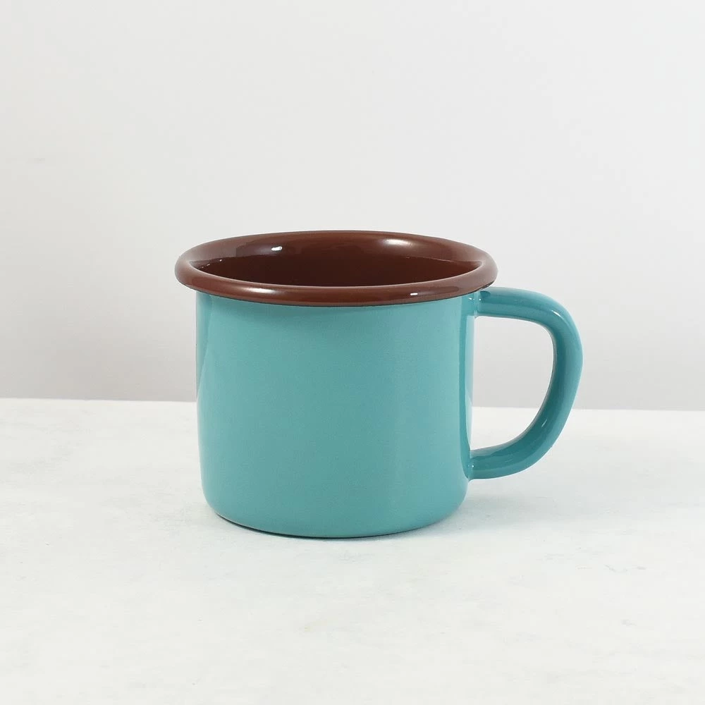 Use Kapka’s colourblock enamel mug to brighten your morning brew. The teal mug has a maroon brown rim for a playful colour contrast. Lightweight and durable, this mug is ideal for travelling – serve your coffee, soup or broth in it. As well as making a great drinking vessel, this mug is a great container for cutlery.