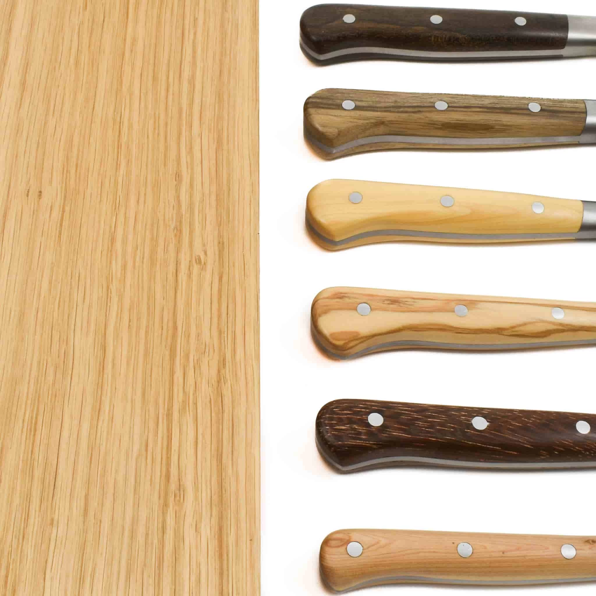 - 20cm walnut office knife – similar to a chef’s knife, this is a classic knife that will cover the most demands of the kitchen. Use to chop chunkier vegetables, or slice grilled chicken.Â