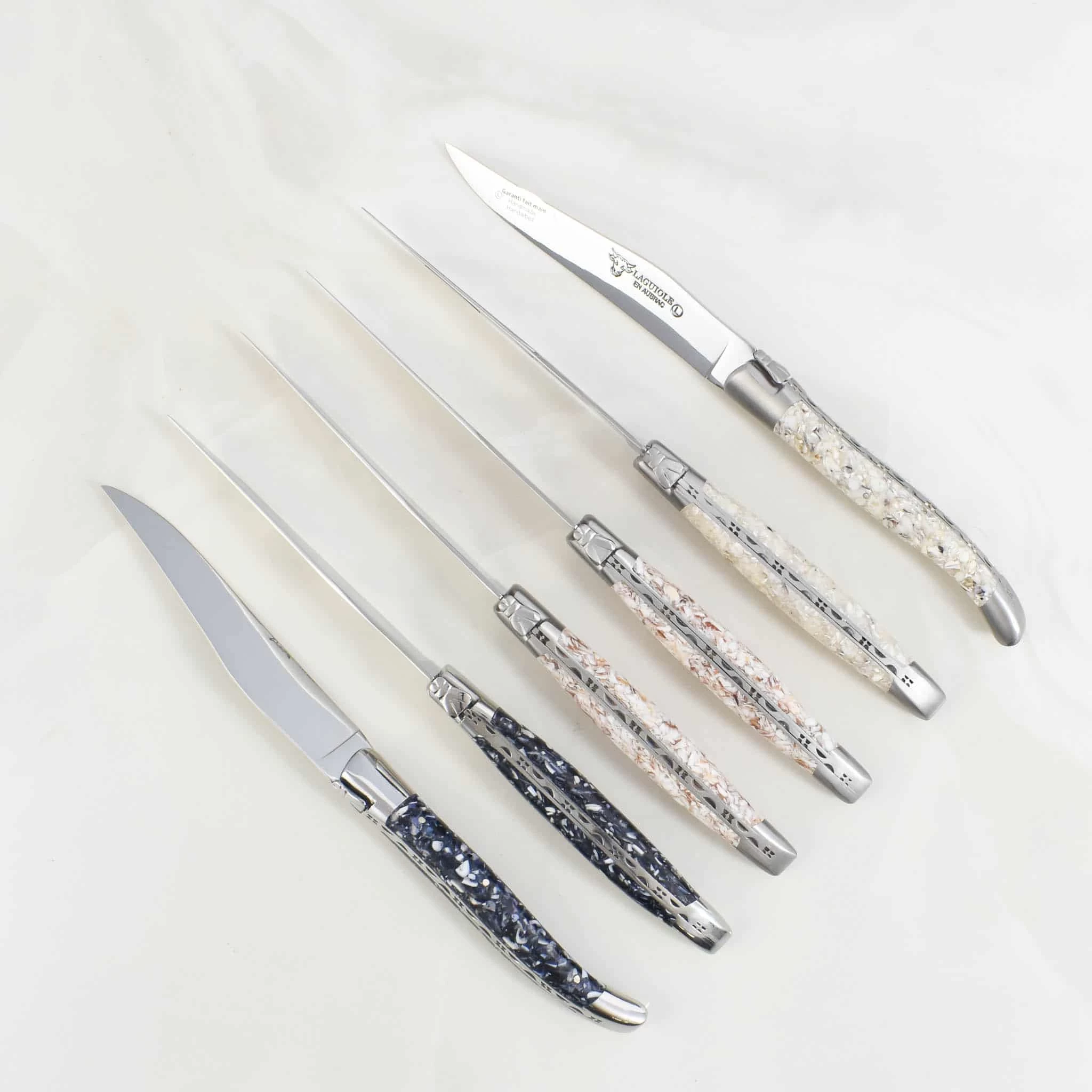 The Laguiole en Aubrac set of six shell steak knives will instantly elevate your dinner table. The smooth steel blades glide effortlessly through rib eye, fillet and Chateaubriand.