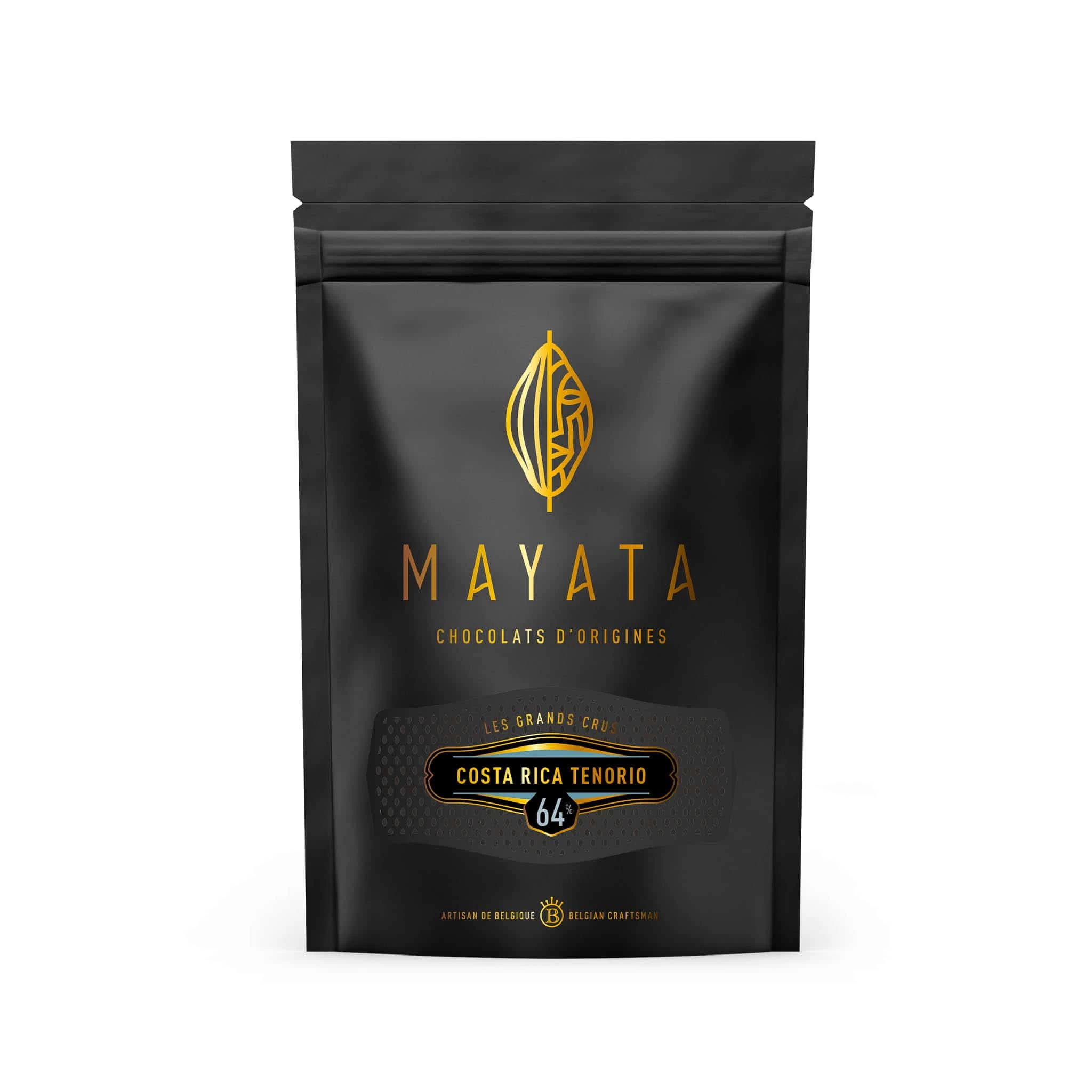 Mayata Grand Crus Costa Rica Tenorio 64% dark chocolate couverture drops add a zesty tangy to rich dark chocolate! Complex layers of chocolatey flavour build from sweeter notes of berries, cherries and citrus. It rounds to a zingy lingering finish. This is perfect if you want a true dark chocolate without any hint of bitterness.Â
