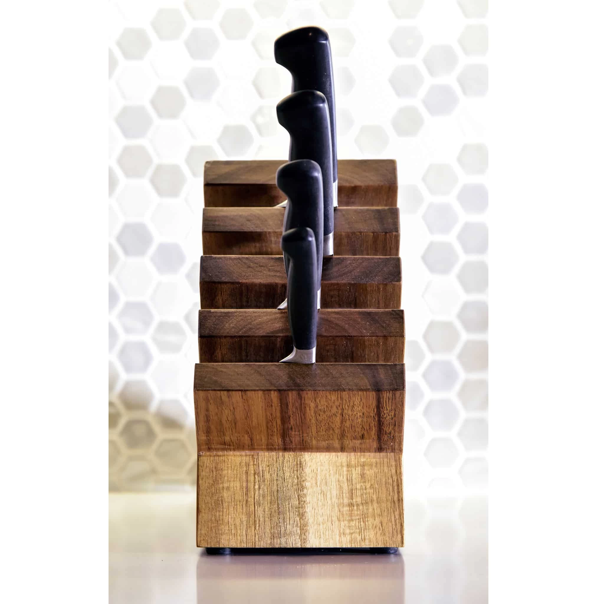 The Messermeister Next Level magnetic knife block with UV lights is the ultimate knife storage and display block that will be the talking point of your kitchen. Made from sustainably-sourced natural Acacia wood, this stunning block integrates seamlessly into any kitchen, holding up to 16 knives.Â