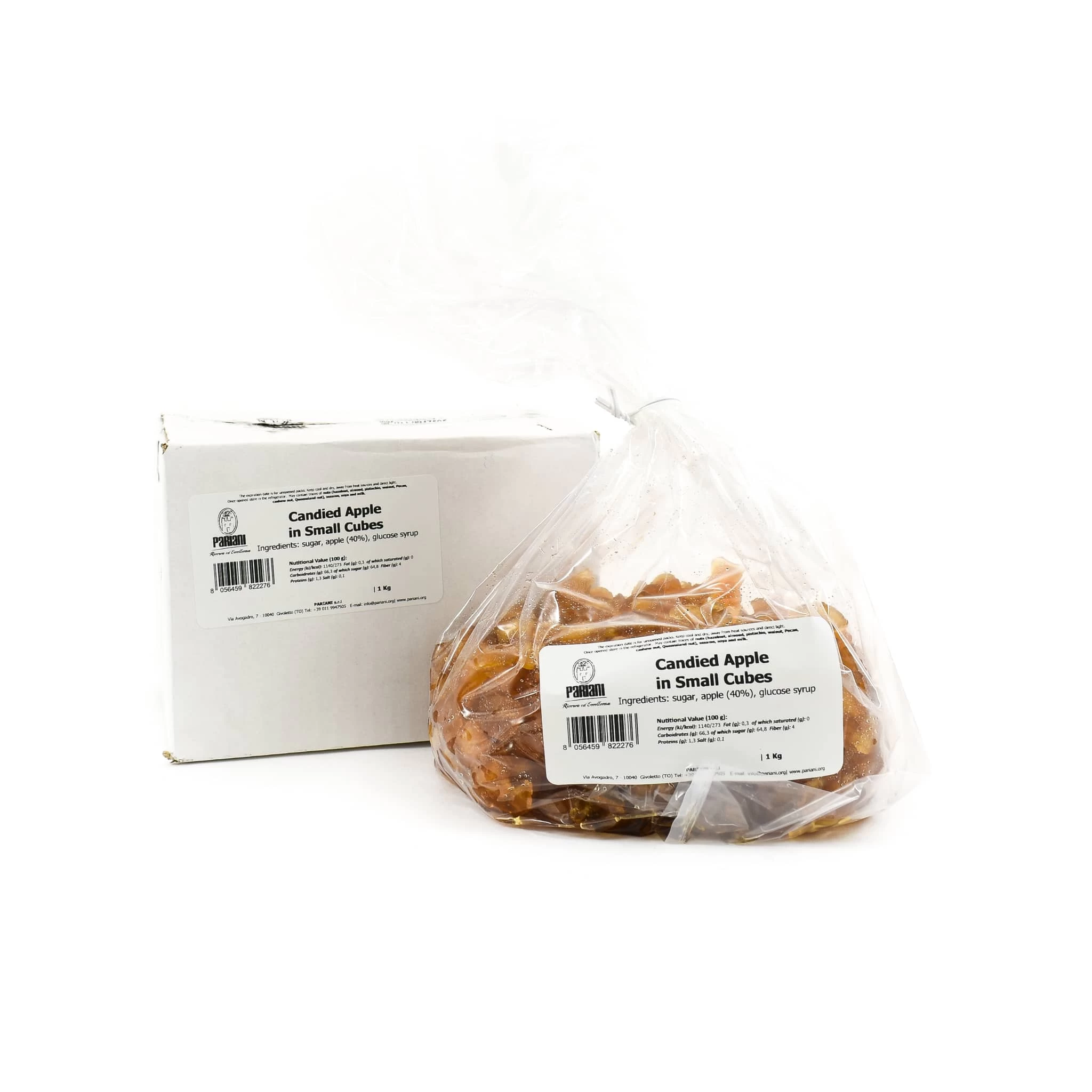 Pariani’s candied apples in small cubes make a sweet addition to cakes and ice creams. Pariani’s exceptional cold candying process leaves the natural flavours of the fruit unaltered, and also helps to prevent the fruit freezing at low temperatures – so the apples stay lovely and soft even in ice cream.