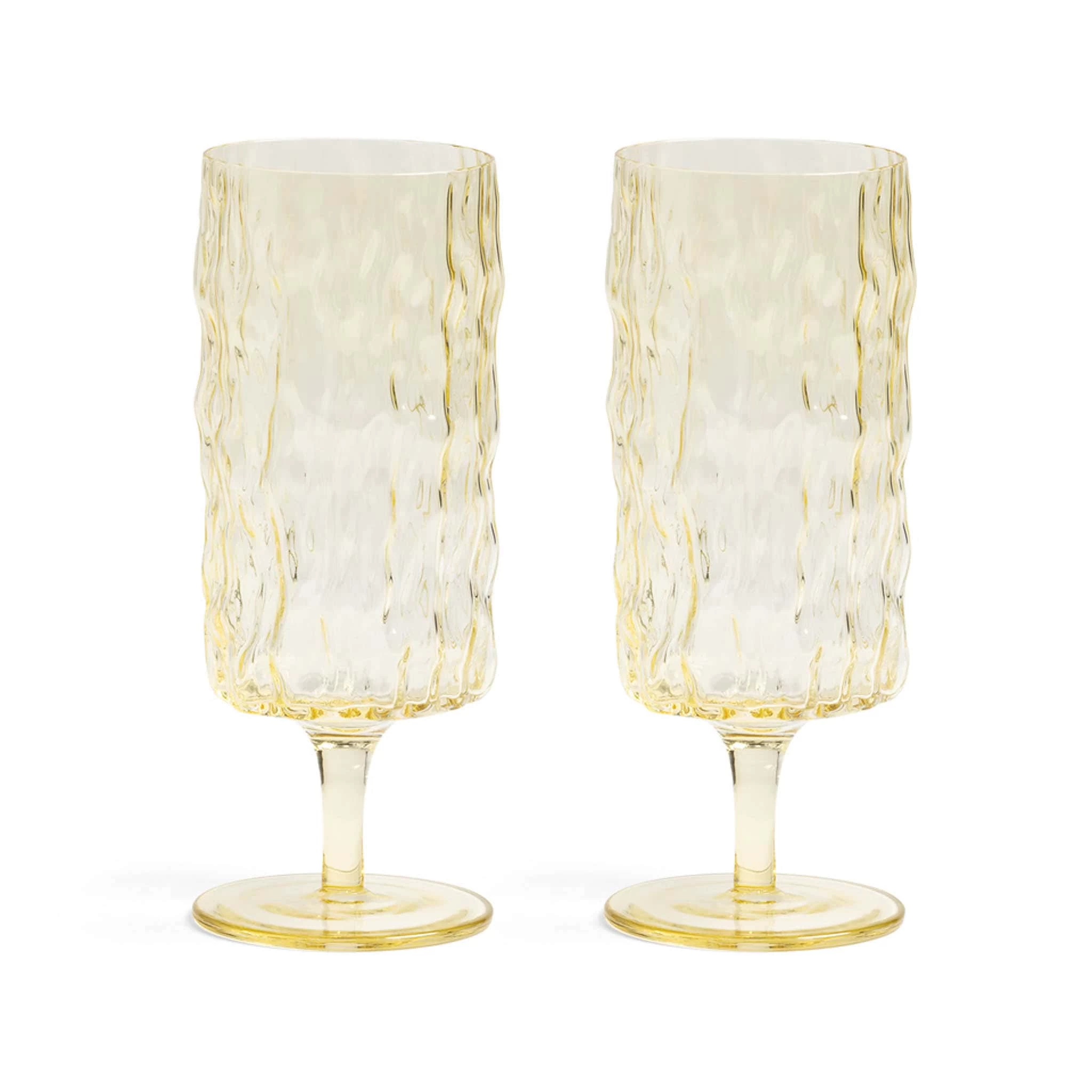 These yellow stemmed glasses are a stylish, durable and eye-catching addition to your glassware collection. We love their tall, trunk shape and the faceted glass which bounces light around the room. Take them out into the garden for an al fresco lunch or use them indoors to serve homemade lemonade, water or iced tea.