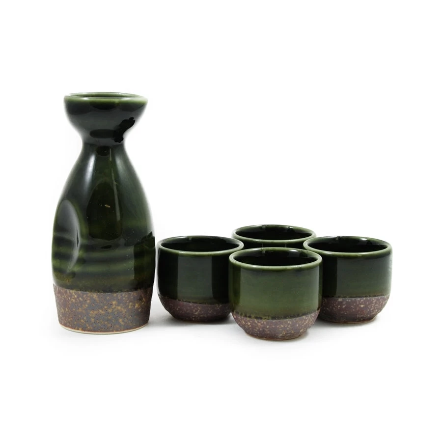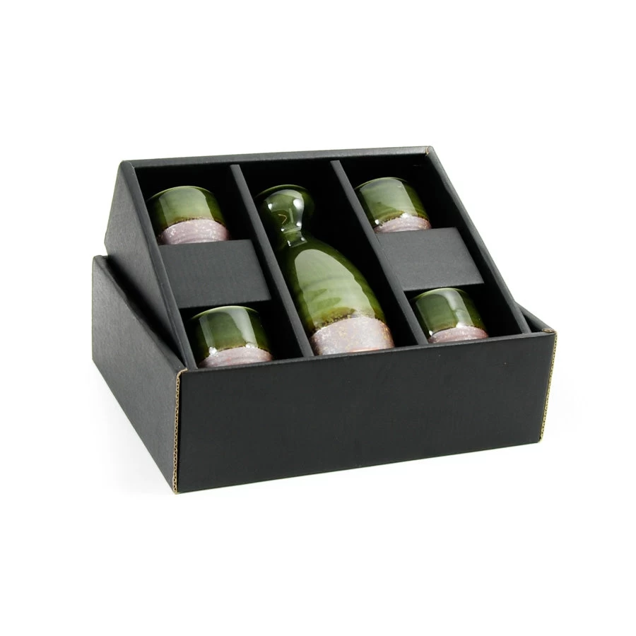 The shinrin sake set is a stunning gift for sake enthusiasts. The traditional flask and four sake cups are finished in a glossy, forest-green glaze with a stone-coloured base. The shinrin sake set comes in a black presentation box.
