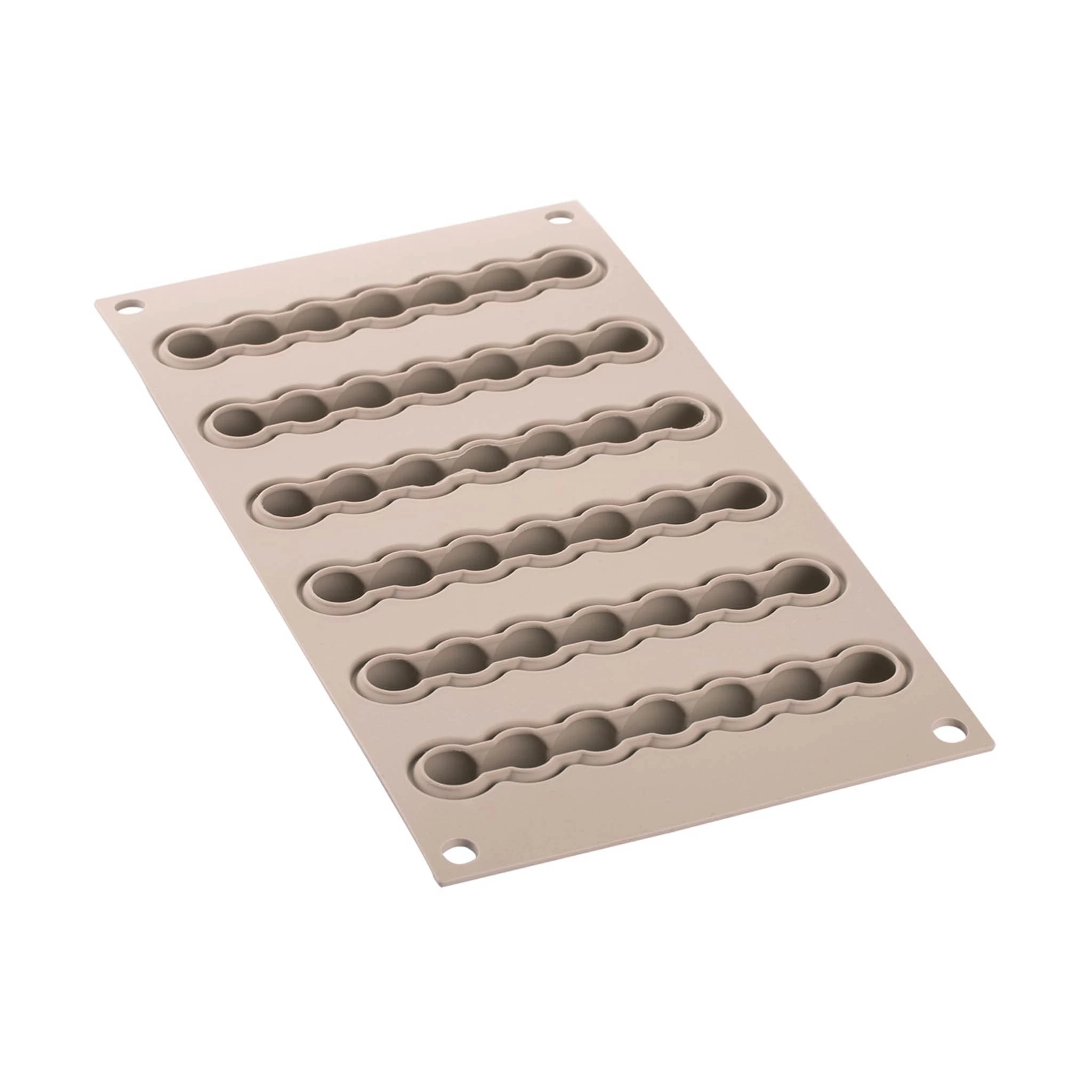 To use this mould, pipe your batter into the long, curved mould. Fill the bobble-shaped mould with chocolate to create an elegant topping.