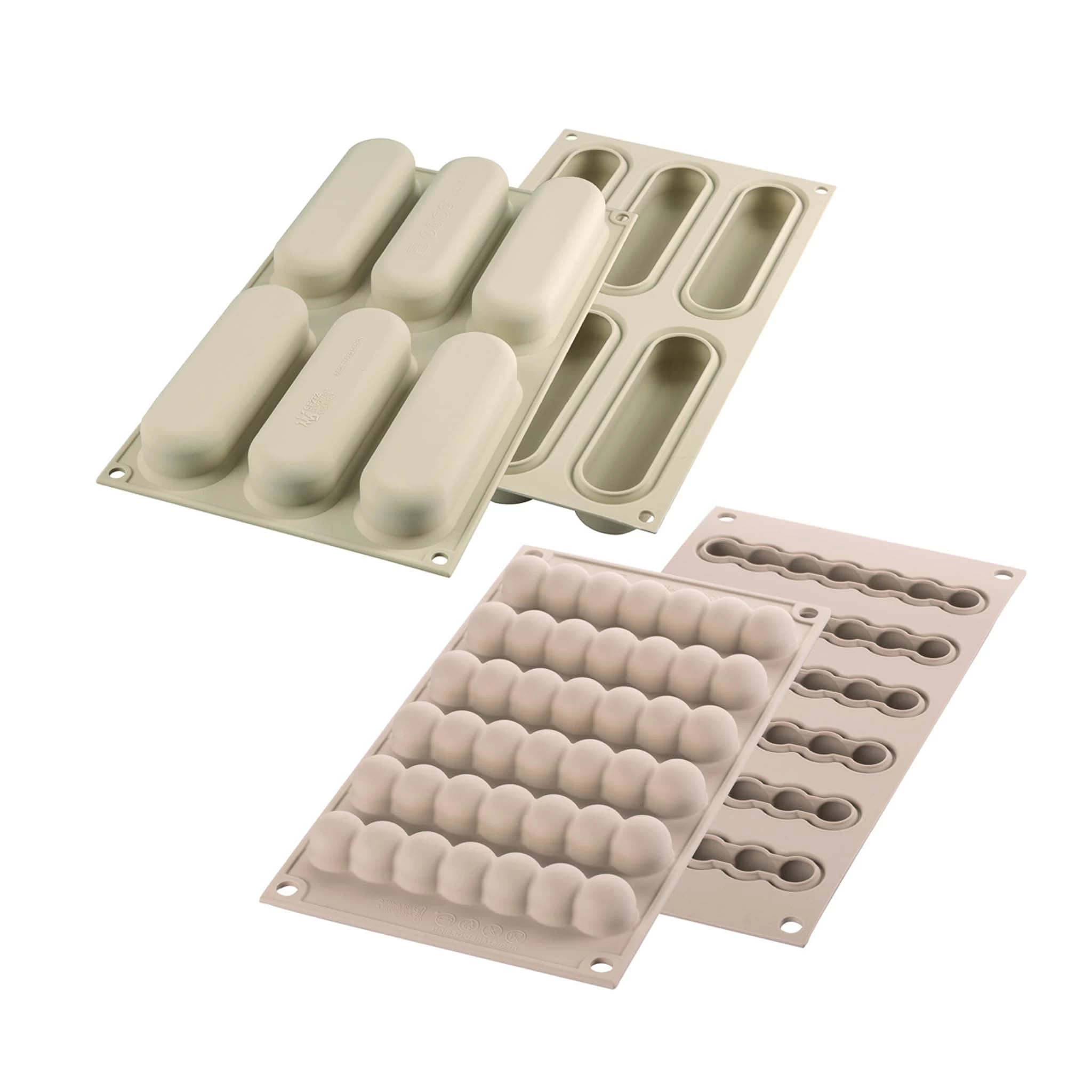 Both moulds feature a thoughtfully designed internal border that gives your éclairs a slightly rounded base.