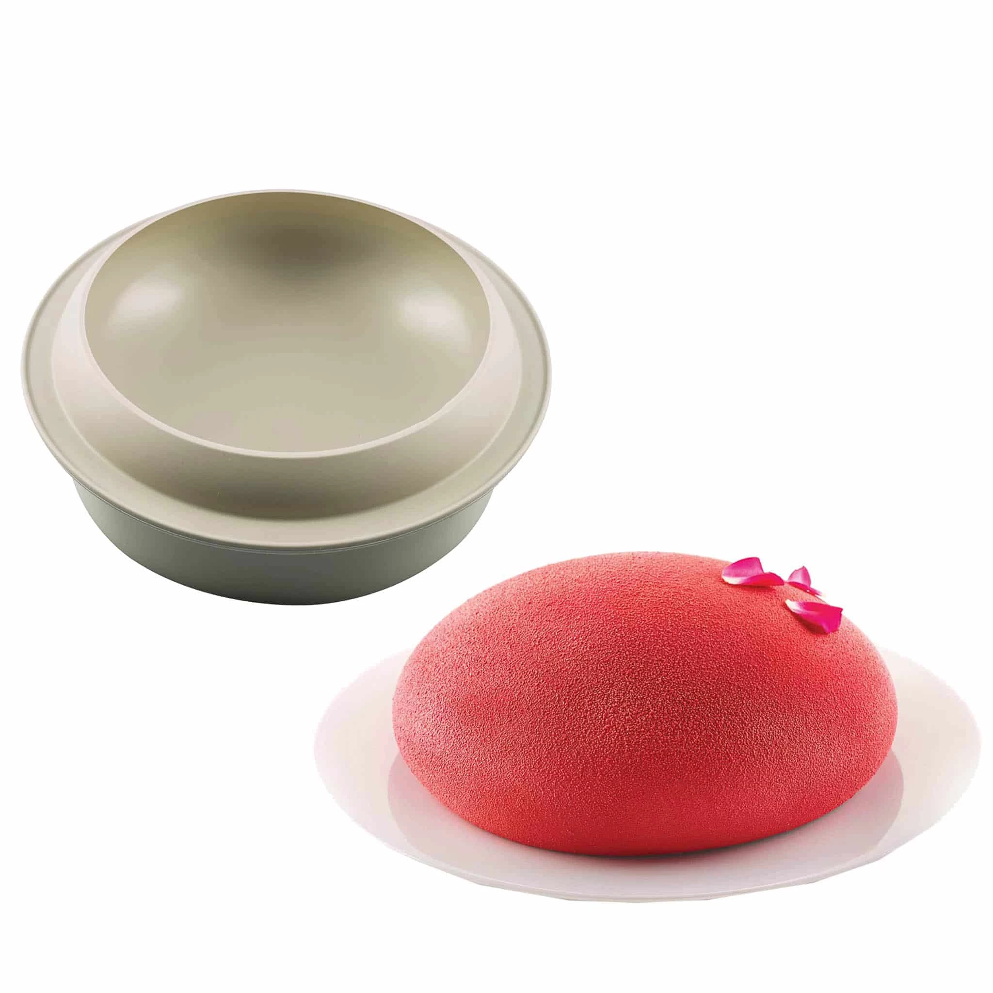 Use Silikomart’s silicone goccia round cake mould to create a striking spherical dessert. Fill this flexible mould with cake batter or semifreddo mixture. Then bake until golden or chill until set. Gently peel the silicone mould from the dessert to reveal a smooth surface and impressive design. Get creative with your dessert decoration – glaze with fruit syrup, melted chocolate or top with cream cheese frosting. This mould features a clever internal border to give your dessert a slightly rounded base.