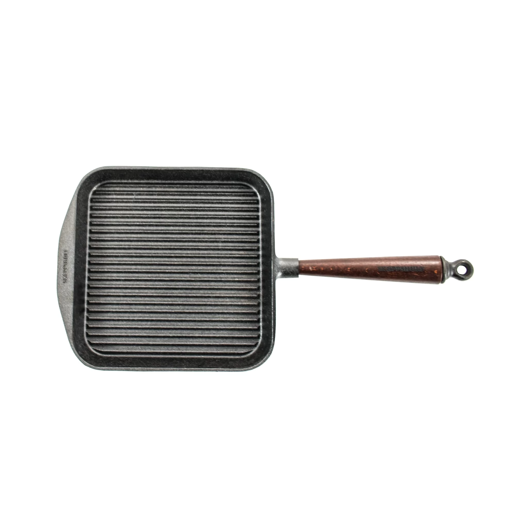 Use the Skeppshult traditional cast iron square grill pan for griddling fish, searing meat, and giving veg beautiful dark char marks. The high ridges are exactly what you want for making sharp, distinct grill lines that give food a dramatic finish. Plus the raised grill ridges mean fat drains away from the food, for proper grilling as opposed to frying.