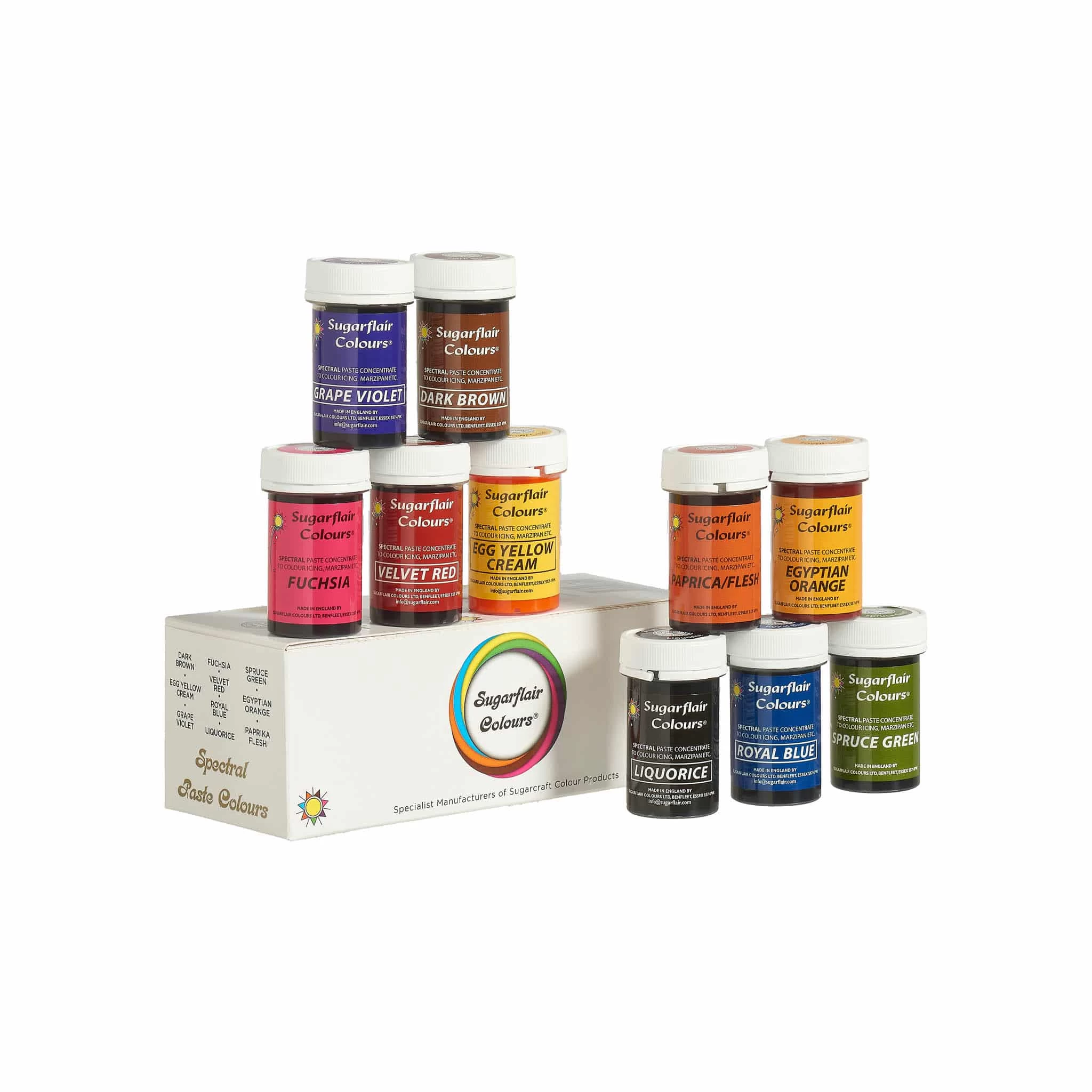 Brighten your bakes with Sugarflair food colouring pastes. These highly concentrated pastes are the perfect way to add colour to icing, sugarpaste, marzipan and more. You can mix them into buttercream, use them as edible paint or add to cake batter to create colourful cupcakes and cake pops.