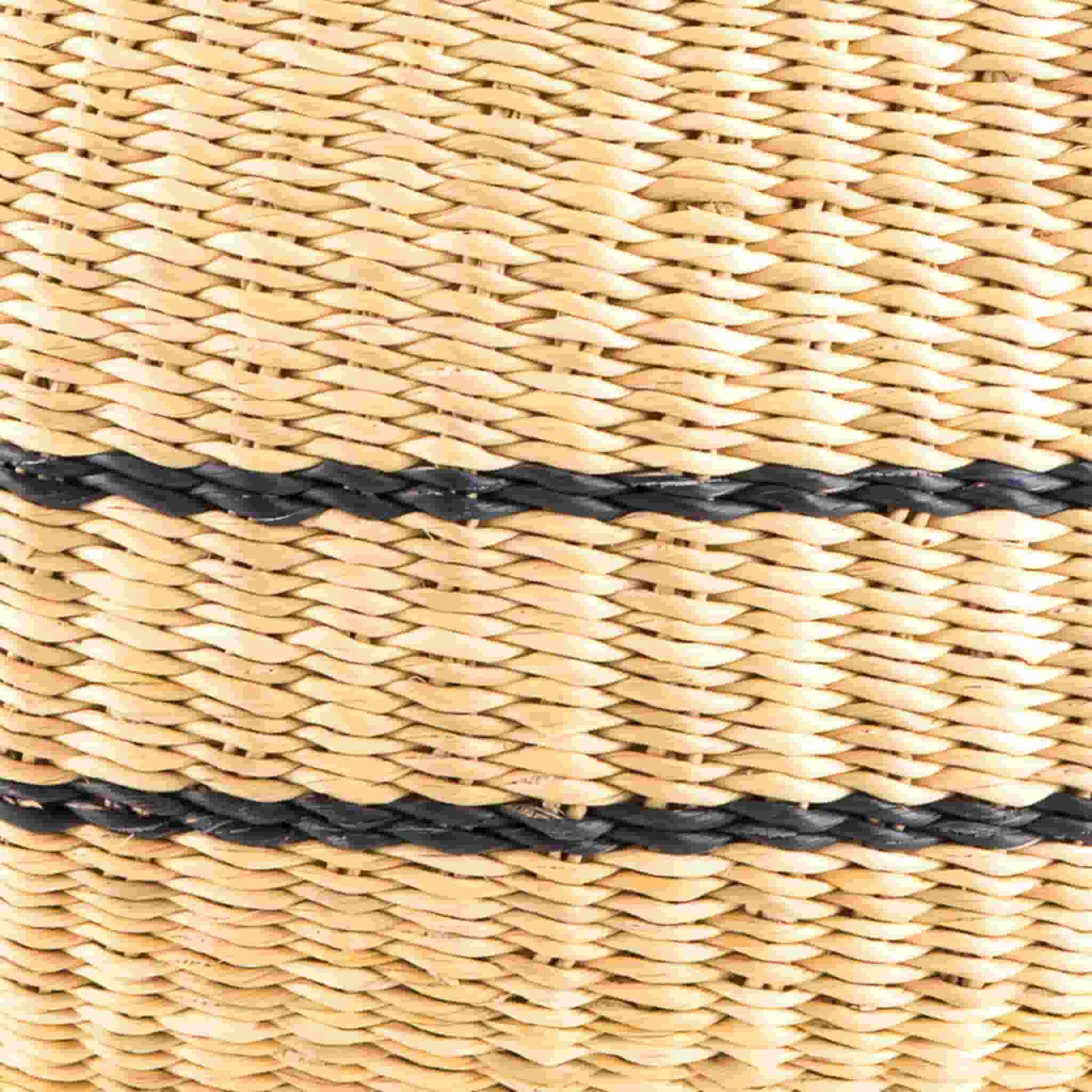 Use The Basket Room Egbe round shopping basket to carry your groceries home from the shops. Every shopping basket is crafted from veta vera grass, a variety that grows locally in the wilds of Ghana. The grass is hand-rolled and dyed in boiling water before being skillfully woven. Once woven, this grass is incredibly robust and durable βΒ youβll be using your basket for years to come.Β